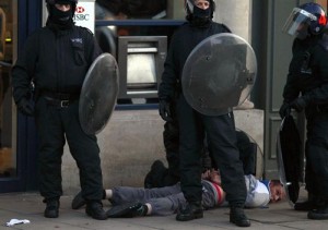 Más de 300 jóvenes se enfrentan a la policía en el centro de Bristol. Las áreas de enfrentamiento son St Paul y Stokes Croft. En esas zonas ya hubo serios disturbios este año cuando la gente protestaba por la apertura de una tienda Tesco Express, que significó más gentrificación del barrio.