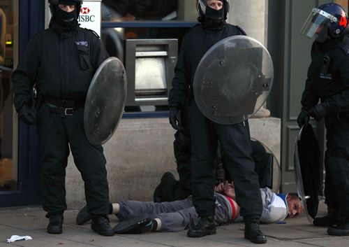 Según Sky News los represores han detenido ya a más de 450 personas desde el asesinato del joven negro. Con los 1.700 nuevos policías llamados ayer, esta noche habrá 13.000 policías reprimiendo en las calles de Londres, sin contar con los que actúan en otras ciudades. Hoy se informó que la policía suspende el partido internacional de fútbol de la selección inglesa, ya que no puede distraer a sus represores.