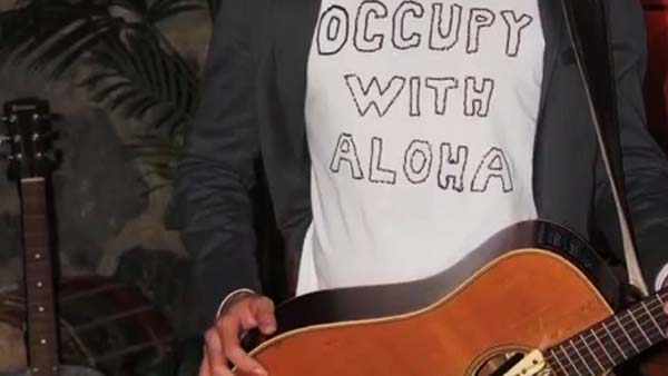 Mientras Makana cantaba, cientos más ligados a Ocupa Honolulú protestaban afuera. Mike Bonnano, del grupo Yes Men –los mismos que realizaron una corrida de toros con el toro de Wall Street hace pocos días– comentó que Makana de verdad elevó el nivel al entregar el mensaje de Ocupa dentro de lo que probablemente era el lugar más seguro en el planeta en este momento.