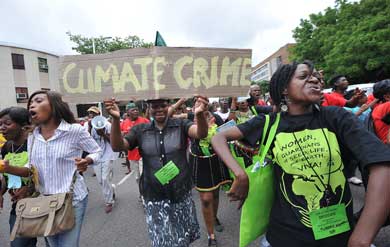 Bassey es una de las tantas personas a las que les preocupa la absoluta falta de ambición que implica la Plataforma de Durban, que posterga hasta 2020 la reducción real y legalmente vinculante de las emisiones, a pesar de que los científicos a nivel mundial coinciden en que la meta fijada de limitar el aumento de la temperatura promedio mundial a 2 grados Celsius (3,6 grados Farenheit) pronto será imposible de lograr. En su informe Perspectiva Mundial de la Energía publicado en noviembre, la Agencia Internacional de Energía prevé que «la acumulación de emisiones de CO2 (dióxido de carbono) en los próximos 25 años representará el 75% del total acumulado en los últimos 110 años, lo que provocará un aumento a largo plazo de 3,5 grados Celsius de la temperatura promedio».