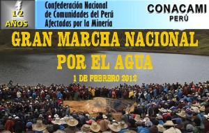 La Confederación Nacional de Comunidades del Perú Afectadas Por la Minería (CONACAMI), se une a la convocatoria a todas sus organizaciones de base, regionales, provinciales y comunidades afectadas por la minería a la Gran Marcha Nacional del Agua que se inicia este 1 de febrero.