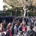 Ayer Lunes 20 de Febrero a las 14:45h, se concentraban frente al colegio LLuis Vives de Valencia, unas 300 personas en solidaridad con los detenidos por las movilizaciones de los días pasados y los recortes en educación. Al salir en manifestación hacia Pza.de España, la policía ha comenzado a cargar contra estudiantes, provocando así la disgregación de los mismos, que provocaba que se agrupaban una y otra vez evitando los cercos policiales. Las protestas se han sucedido por todo el centro de valencia en pequeños grupos con intención de juntarse nuevamente tras cada indiscriminada carga. Ante las encerronas de la policía y el paso de los estudiantes, iban cerrando todo tipo de establecimientos y el colegio Lluis Vives ha abierto sus puertas para que entrase la gente, ya que la policía no estapermitida para cargar en él, aún así han entrado en algunas ocasiones.