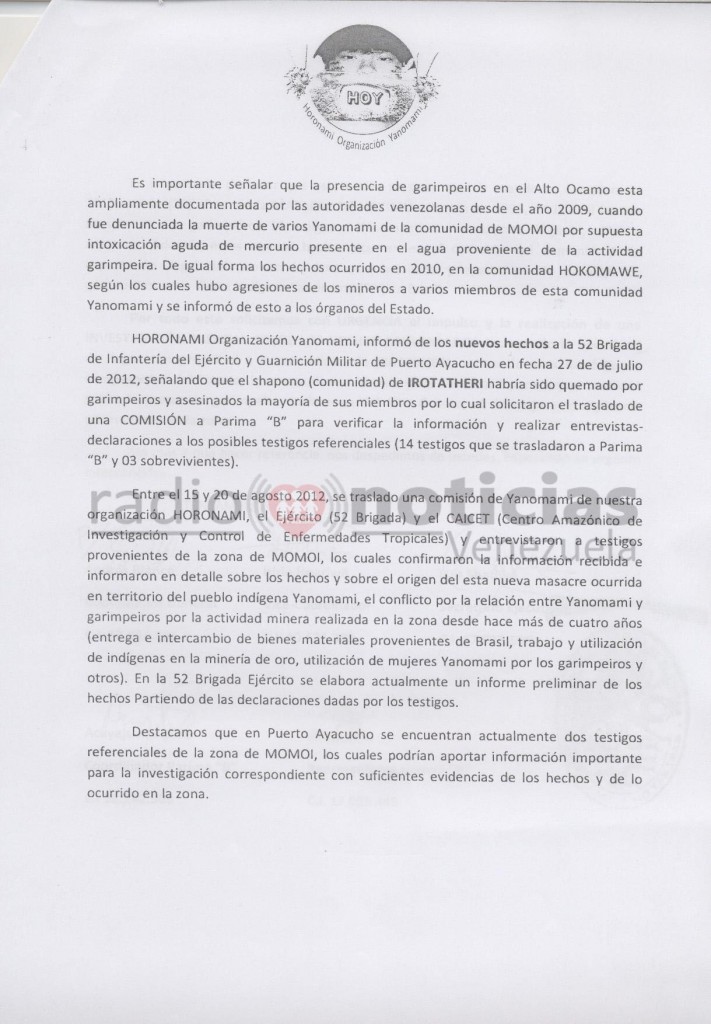 Silva manifestó que la denuncia fue presentada ante la oficina de derechos humanos en Puerto Ayacucho y también a la 52 Brigada de Infantería de la Selva, pero ambos organismos ignoraron la denuncia.