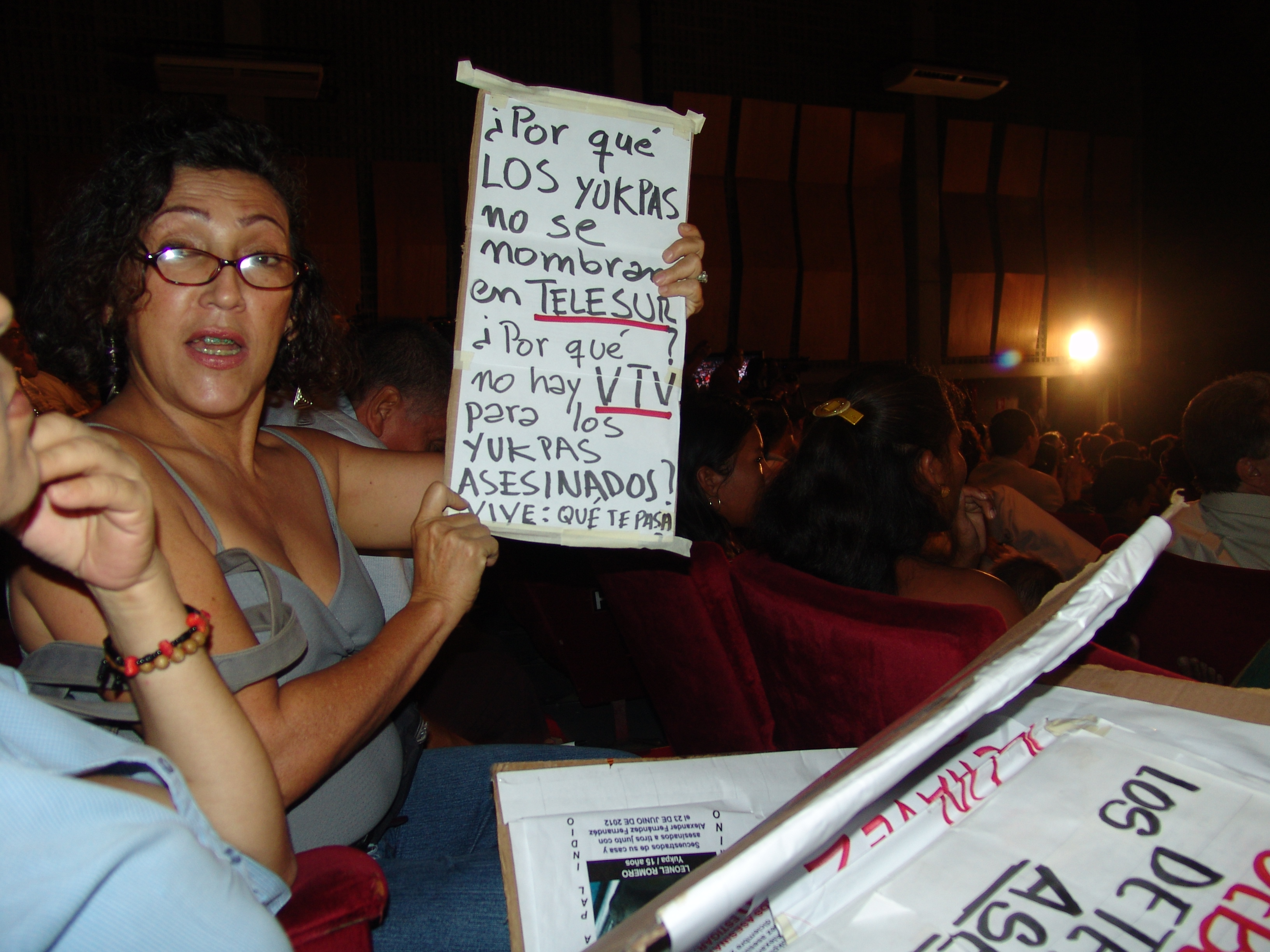Dos de las compañeras que andaban con el grupo decidieron quedarse a esperar que pasaba en el foro, con la esperanza que la frialdad tecnocrática con la que se estaba abordando el tema comunicacional en revolución, diera un viraje que permitiera insertar el problema de los pueblos originarios. Rotzaida Marcos y Carola Corao decidieron quedarse, mientras el resto junto con Zenaida y su hijo dormido y cansado de las actividades en las que participaron ese día, y las otras compañeras yukpa, fueron a descansar con la esperanza puesta en que la lucha que vinieron a dar en Caracas, podrá ser denunciada en el canal del presidente como ellas llaman al canal 8, y quizás hasta el presidente las reciba a ellas y a su papa Sabino Romero.