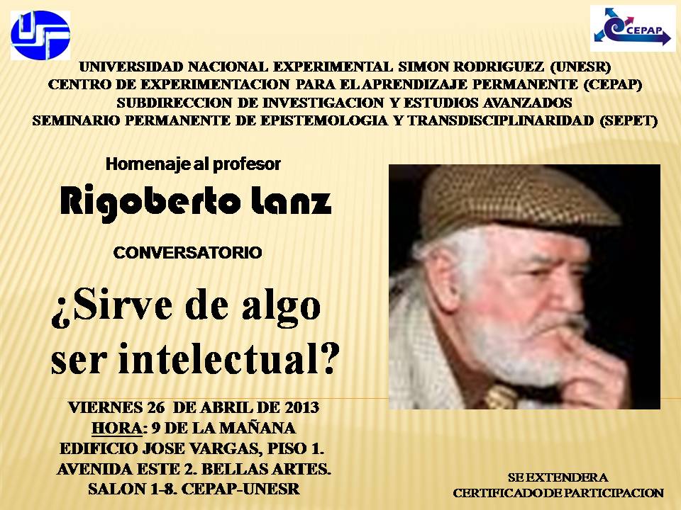 CEPAP: Conversatorio ¿Sirve de algo ser intelectual? Homenaje a Rigoberto Lanz
