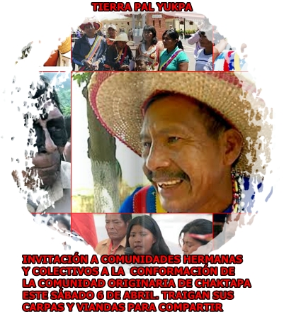El cacique Sabino Romero Martínez, hijo de Sabino Romero Izarra, a nombre de seis comunidades yukpa, invita a los hermanos y hermanas de las distintas comunidades indígenas, colectivos y amigos y amigas de la causa yukpa a participar en la Conformación de la Comunidad Originaria de Chaktapa, este sábado 6 de abril.