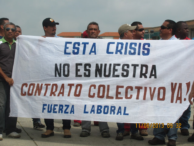El tema común que afecta a todos los trabajadores de este eje de la costa carabobeña por parte de los patronos, especialmente los públicos pero también los privados, es la negación a reconocer el derecho a la contratación colectiva alegando una crisis económica que pretenden superarla a costa de mayores sacrificios para los trabajadores.