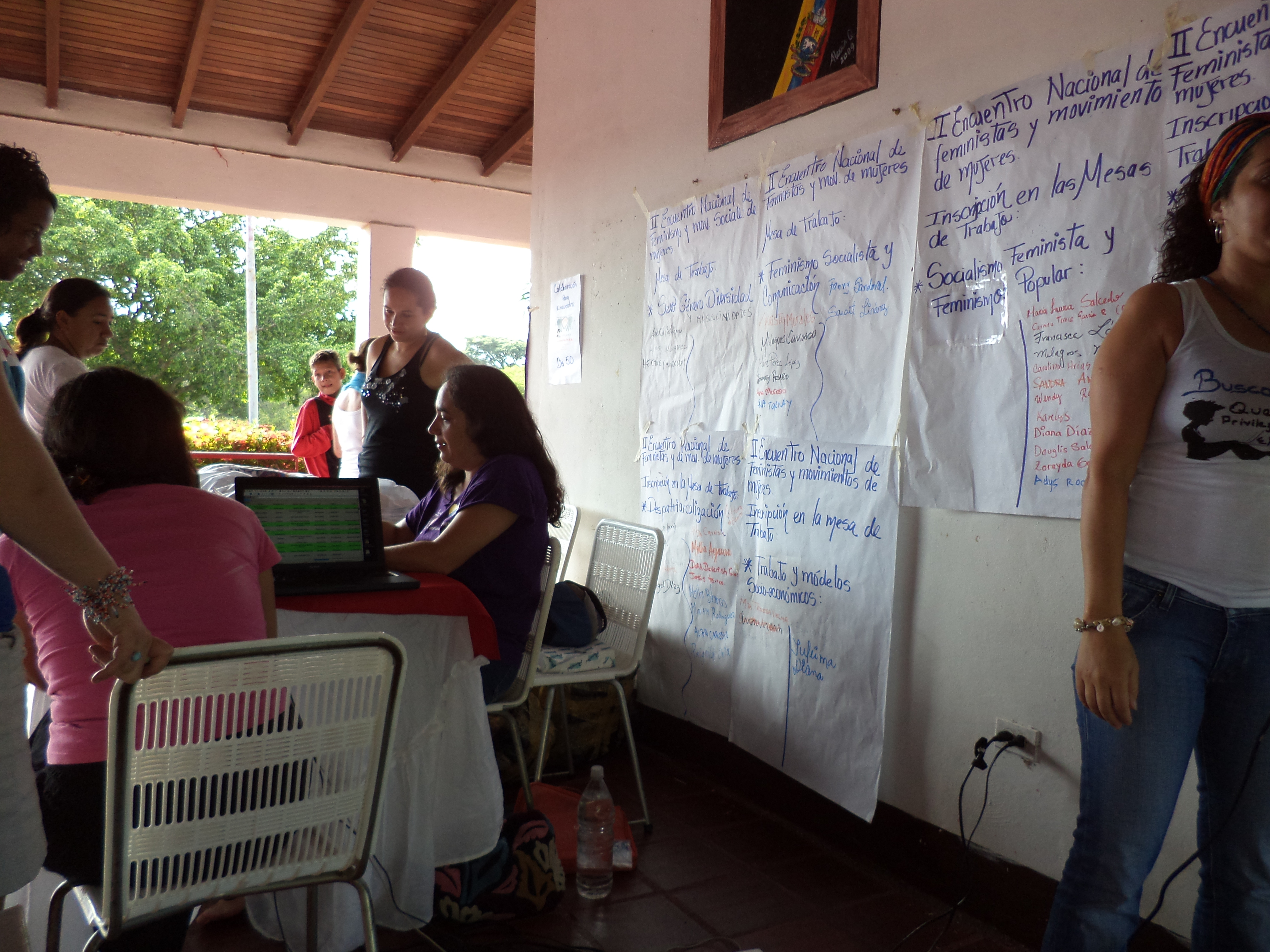 Comenzamos con música y color en las exposiciones de nuestro trabajo colectivo. Iniciamos con una Plenaria, en la que recordamos la historia de las luchas de las mujeres venezolanas del siglo XX, sus combates y logros, el camino recorrido por la Araña Feminista, sus objetivos, definiciones, lo que se ha alcanzado y lo que queda por hacer. Cuán bueno es para todas saber que estamos juntas, que somos más cada vez, que somos diversas y confluyentes, que hay fuerza y sobran ganas.