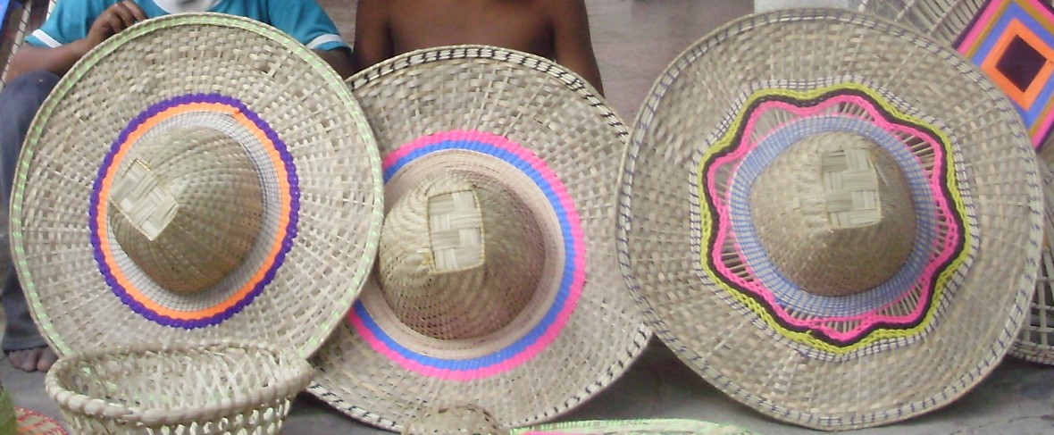 En el Centro Cultural Parque Central, están expuestos y a la venta, sombreros y cestas tejidos por Zenaida, Miriam y su madre Lucia para recaudar fondos para la lucha por la tierra que continua a pesar de los recientes pagos de las bienechurias a algunas de las haciendas.