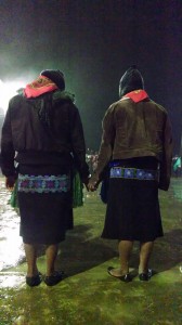 Eran ya las cuatro de la tarde y la gente buscaba cómo trasladarse al Caracol II, tuvimos que usar un servicio especial para que más de 40 personas llegáramos a tiempo. Saliendo de la comunidad indígena tzotzil, del poblado San Juan Chamula, la neblina como guardián acompañó nuestro recorrido; llegamos cayendo la noche; era cientos de personas esperando entrar; así que los compañeros zapatistas encargados del acceso decidieron abrir puertas después de registrarse. Accesamos y otra fila para lograr un pequeño espacio donde acomodarse del frío, la lluvia y humedad de un fin de año difícil para el país. Pasaron casi dos horas hasta que logramos junto con los brasileñxs acomodar nuestro espacio pa dormir. Corría el reloj occidental y las diez se aproximaban y todo estaba ya listo para la ceremonia.