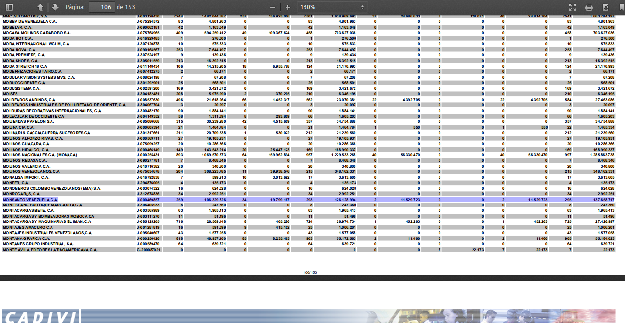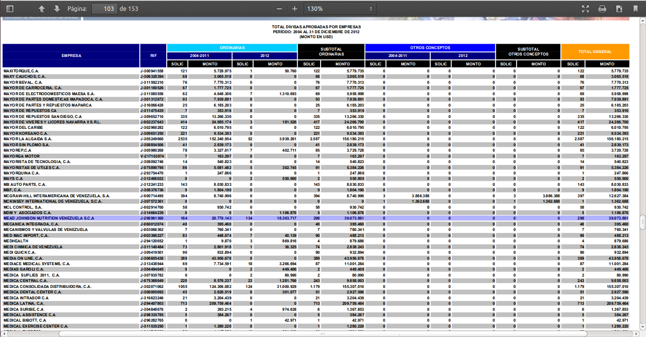 La cuestión es que, después de revisar el Total de divisas aprobadas por empresas hasta el 2012, lista emitida por Cadivi, podemos constatar, que a la fecha Monsanto Venezuela C.A. ha recibido 137.658.717 dólares (8) para importar el veneno que el pueblo legislador sigue enfrentando.