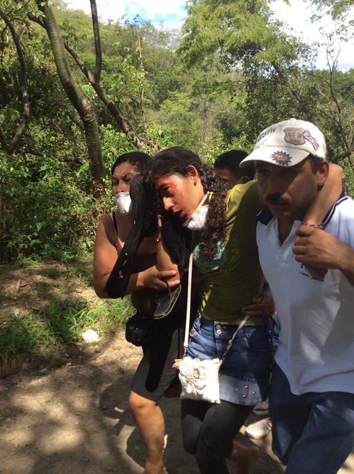 Algunas mujeres oraban en busca de detener el avance de los agentes, quienes tenían la orden de desalojar el área. Al llegar donde estaba el grupo de inconformes, comenzaron a retirarlos a empujones y esto desencadenó forcejeos, gritos e insultos. Algunos manifestantes comenzaron a lanzar palos, piedras y varios objetos, y la Policía respondió con gas lacrimógeno. Hora y media duró el enfrentamiento, en el que resultaron intoxicados niños, mujeres y ancianos por el gas lacrimógeno.