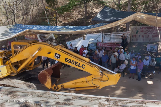 Los pobladores, vecinos de San José del Golfo y de San Pedro Ayampuc, que se oponen a la mina, por considerar que es contaminante, se sentaron frente a la entrada de las instalaciones.