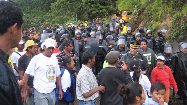 «Esta mañana entraron alrededor de 250 policías a Intag; al momento hay 30 vehículos policiales instalados en el centro poblado de la comunidad de Junín, ingresaron a la fuerza junto con el gobernador de Imbabura, la presidenta de la Junta Parroquial de García Moreno y alguna gente de comunidades aledañas y otra gente desconocida presumiblemente es gente contratada porque no los conocemos. Una parte de la fuerza policial permanece en la comunidad de Junín y otro tanto ha avanzado a la reserva comunitaria de Junín para instalar carpas en las que pretenden quedarse. Alrededor de las 4 de la tarde se produjo un atropello a varios miembros de la comunidad que fueron maltratados por la fuerza pública, fueron arrastrados y detenidos» Entre las personas detenidas se encuentran Liana Torres, esposa de Javier Ramiréz (detenido por pedido