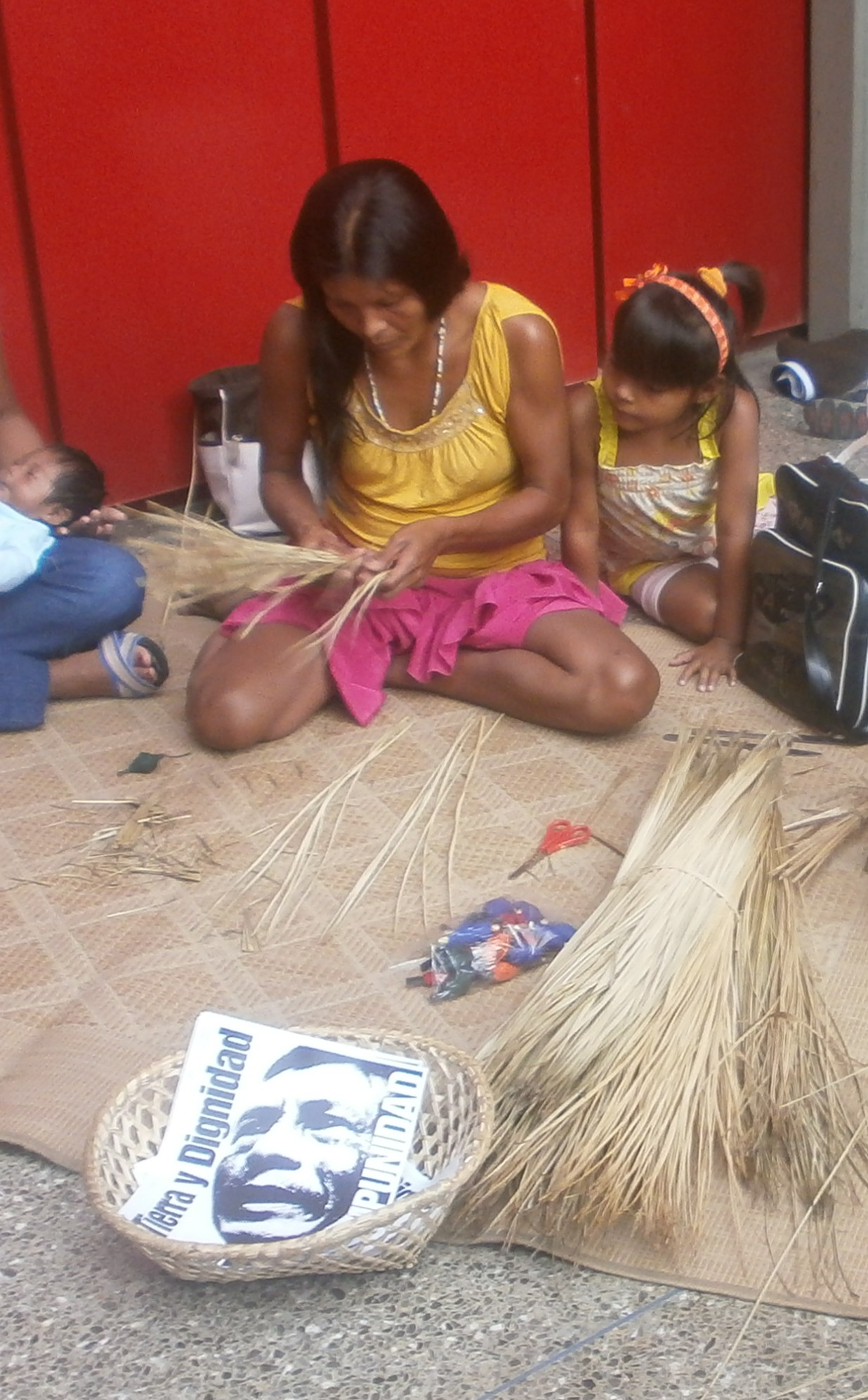 Tejimos con ella el pasado año en una taller de tejido yukpa donde estuvo junto a su hermana Zenaida y su cuñada Alina, todas tres vinieron con sus hijos pequeños y sus bultos de cestas, sombreros y taparitas, bultos tan grandes que una se pregunta como hicieron para traerlos de tan lejos.