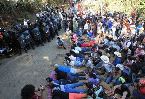la_puya_protestas1En el lado izquierdo, a la orilla de la carretera, las champas que después de dos años de resistencia instalaron los vecinos del lugar donde se representa a toda Guatemala, pues su deseo de proteger el ambiente local también protegerá a toda una nación y un pueblo. Atrás de los cientos de elementos represores se vio maquinaria comilona de suelo, tierra fértil, árboles y animales. Son esas mismas bestias motorizadas que hacen los nuevos caminos de muerte y desvían las fuentes de agua nacida y pura hacia el corazón de la mina, que luego la vomita hacia el consumo humano, toda cargada de contaminantes y encomiendas fatales.