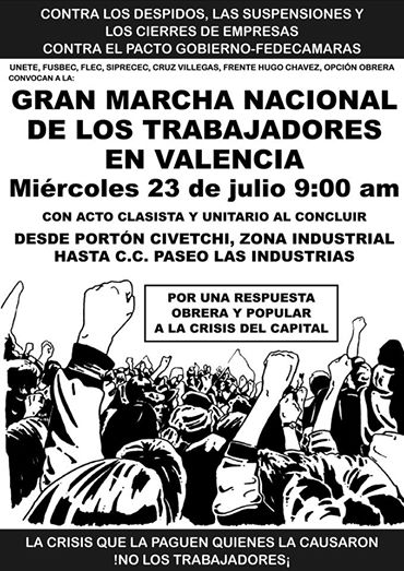 Contra los despidos, las suspensiones, los cierres de empresas, contra el pacto gobierno-fedecámaras