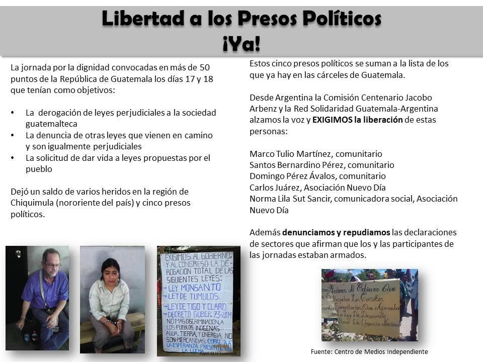 Esta detención ilegal es la respuesta que el gobierno de Otto Pérez Molina ha dado a las movilizaciones que en estos dos últimos días se han dado en más de 50 lugares en todo el país, por parte de organizaciones, comunidades y pueblos que exigían revertir de forma definitiva la denominada «Ley Monsanto» y otras leyes que les afectan directamente.
