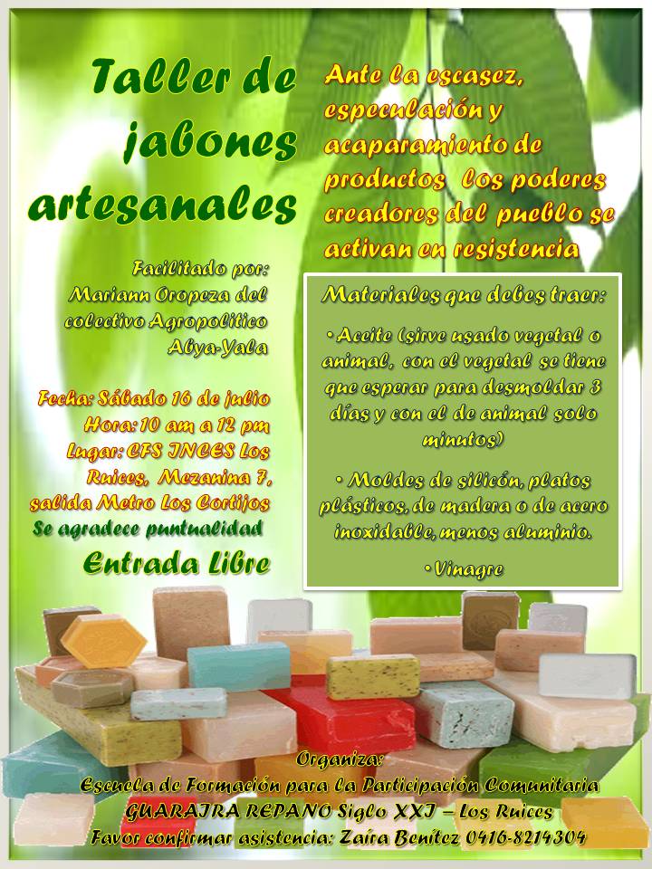 En cualquier caso poniendo nuestro granito de arena en esto de contribuir a la soberanía cognitiva, la revolución cultural, y la producción a escala humana, les invitamos este sábado 16 a un taller para aprender a realizar jabones artesanales, en el anuncio se indican los materiales que debes traer (los puedes tener en la casa).