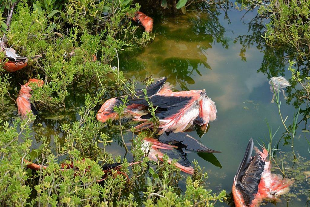 Continúa la matanza de flamencos (phoenicopterus ruber) en la laguna de Las Peonías. La exploración del sábado mostró los fúnebres avances, esta vez nos encontramos con un panorama desolador, los cadáveres dispersos en la marisma eran como el fin de todas las arcadias, cabezas y huesos, plumas y esas largas patas zancudas regadas aquí y allá, crimen autorizado en la Venezuela de todos los crímenes.