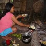 Comimos pescado de río, caldo de gallina, un caldo de mono, asado de suri con yucas, suri crudo con cogollo de chonta, platos exóticos para un paladar poco acostumbrado, pero igual a “darle curso” para saciar el hambre.