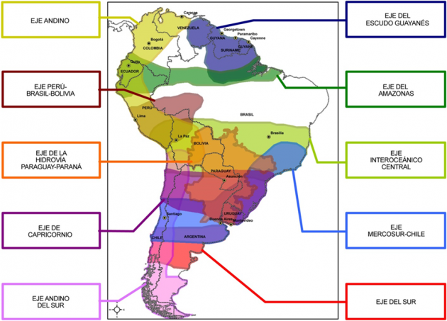 Ejes de Integración Desarrollo del IIRSA. Especial atención en dónde está ubicado la Zona de Desarrollo Estratégico Nacional Arco Minero del Orinoco.