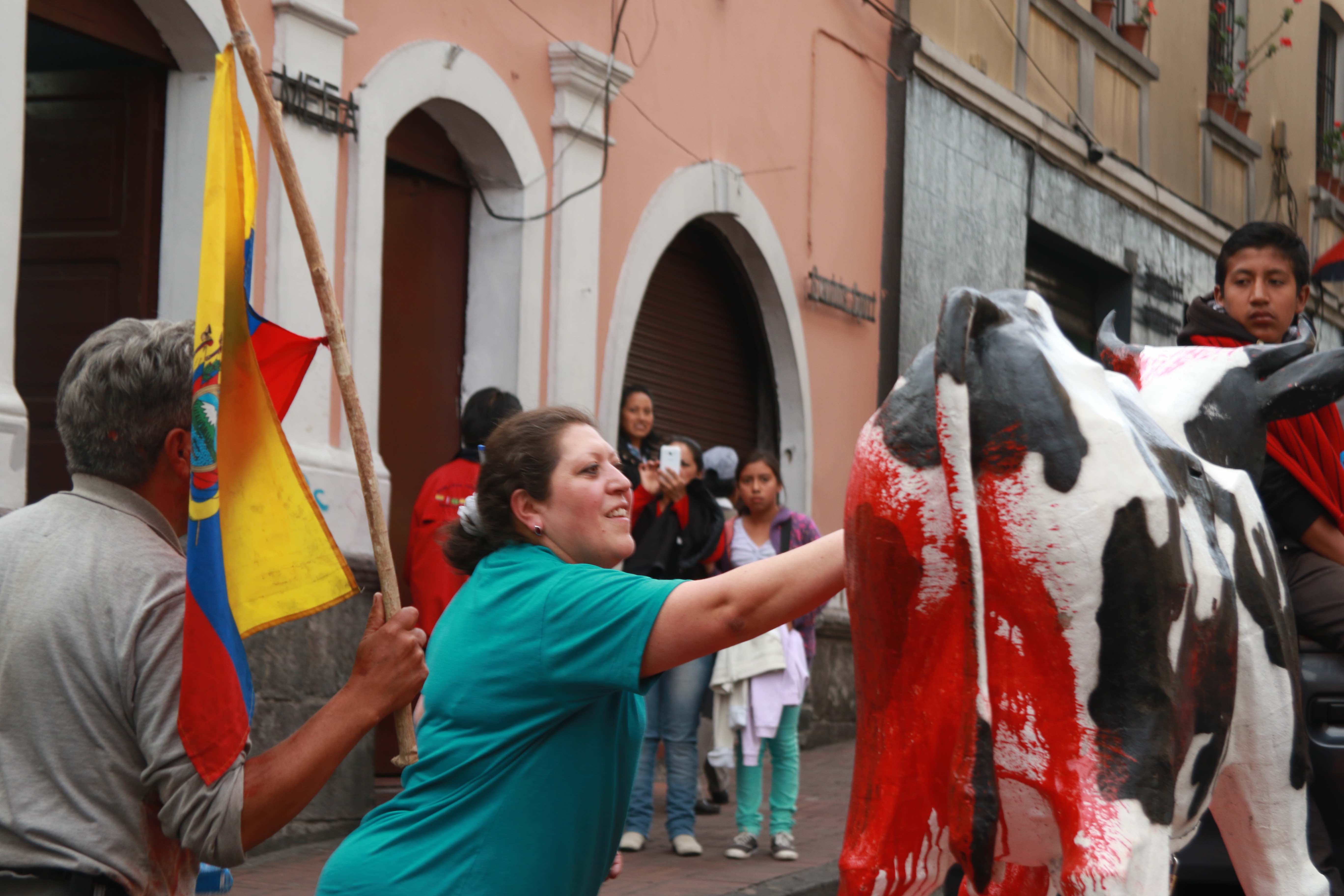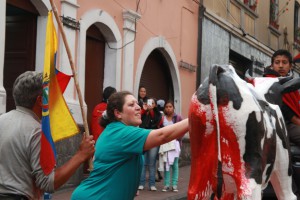La vaquita, sufrió un atentado la noche del 11 de agosto. Pintura roja simboliza la sangre